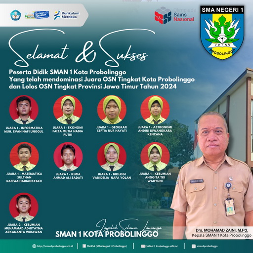 SMAN 1 kota Probolinggo kembali membuktikan kwalitas diri dengan mendominasi perolehan medali emas Olimpiade Sains tingkat kota dan kabupaten. Perolehan...